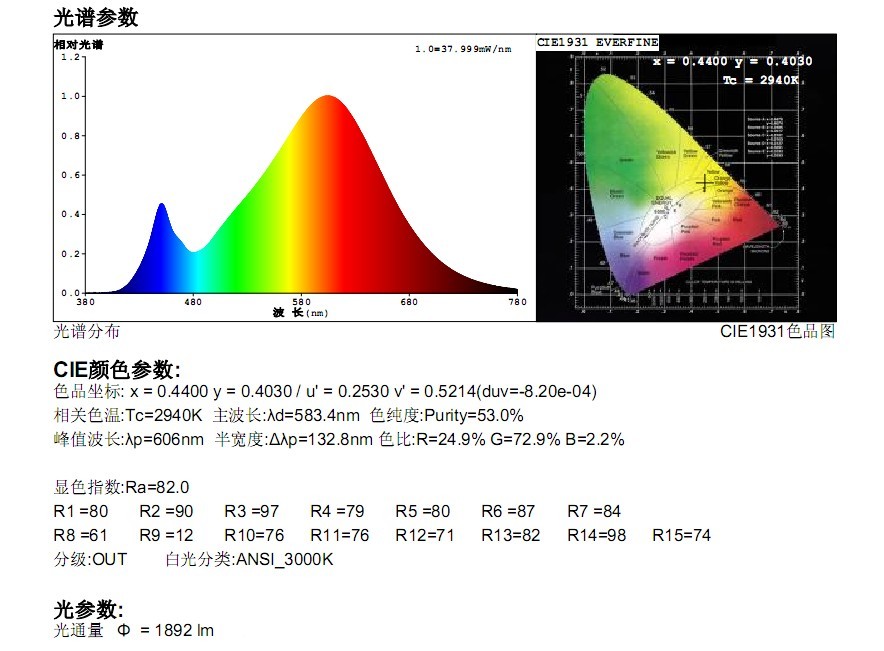 3. 系统功率: 28W±15% 4. 灯具光通量:2000lm