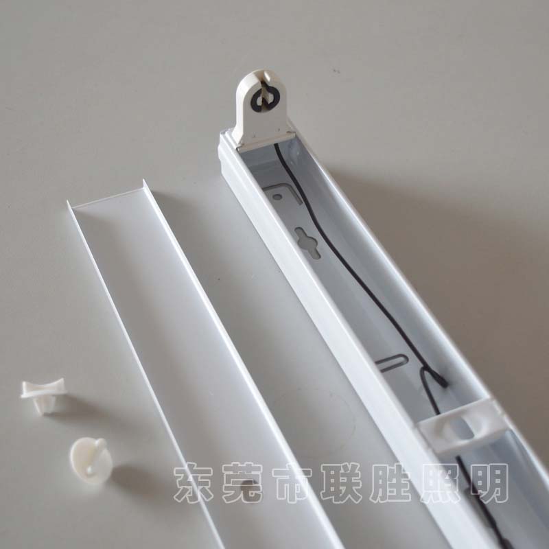 适配光源:T8 T10 LED日光灯管(直径26MM/32MM)。产品长度有0.6米、0.9米、1.2米与1.5米四种规格;适配LED灯管长度分别是:598MM【9W】、894MM【12W】、1198MM【18W】和1498MM(不含灯管插针)