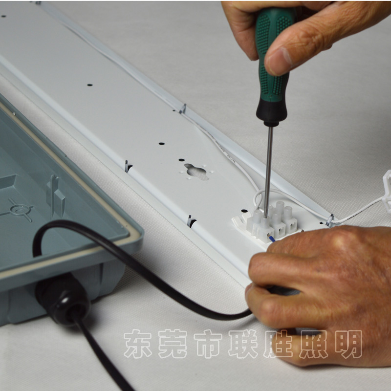 灯脚采用扣入安装,铁板上有接好地线的进线端子,方便接入电源线;