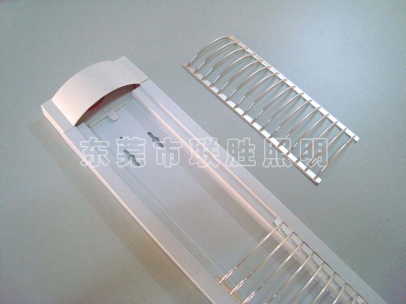 联胜LED双管带罩支架LS-225WL:材质采用优质冷轧钢板设计,铁质厚度0.35mm,表面经除锈、除油、防锈及静电粉末喷涂处理,不易生锈(比喷漆处理防腐蚀性能更好,更不易磨损)。