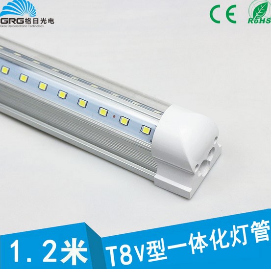 厂家直销T8V型一体化LED日光灯管1.2米 双排灯珠高流明...