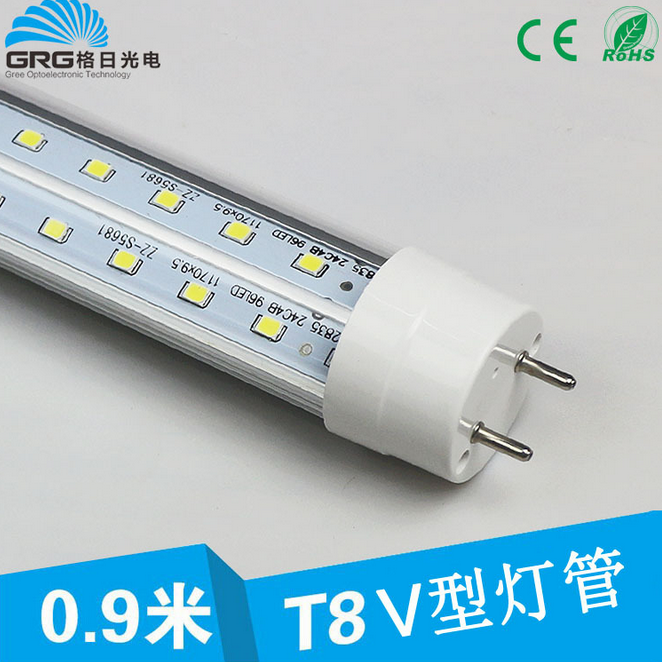 中山ledt8V型日光灯管20W 双排高流明灯珠 0.9米t8V型...