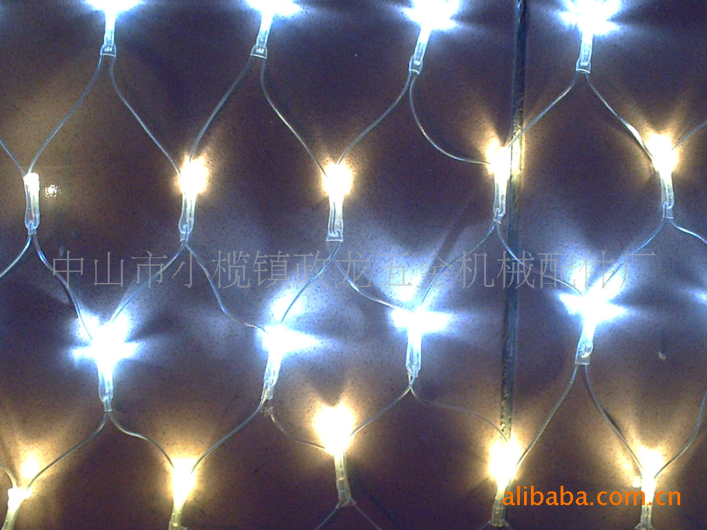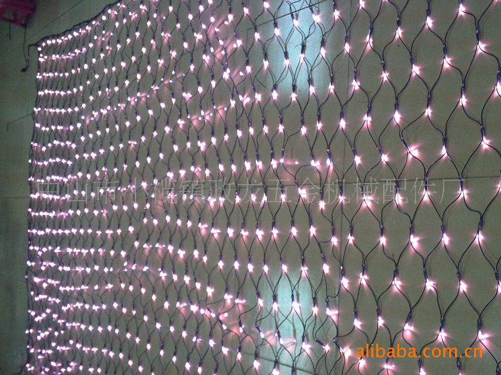 LED网灯有高亮度LED结合PVC透明线或黑线编织而成,形状各异,铺挂于广场,酒楼,家居等场所。