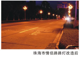 路灯照度的高低,会直接影响车辆与市民夜间的出行安全,所以政府对路灯的照度有明确的要求。而路灯的照度比较低,不仅仅是光源的发光效率低的缘故,而是在于灯罩的透光度不够,导致光源发光效率的浪费。珠海华而美照明有限公司在不改变路灯原来的特色基础上,灯型、杆型、电器、光源等不改变,只是融入不少高科技元素,将原来的圆球灯具更换为具有透光性能强的PC材料制成的新型圆球灯罩,灯罩内部加装了精确定位的光学系统照明器材,这样使路灯灯具提高透光度,减少光能浪费,经测量,试用的路段路面平均照度是原先的6倍多,大大提高了路灯照明效果。