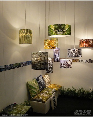 来自英国Noodle的灯罩。运用纺织品层压技术使之覆压在pvc羊皮纸之上,然后手工旋转完成。所有的产品都是手工制成。