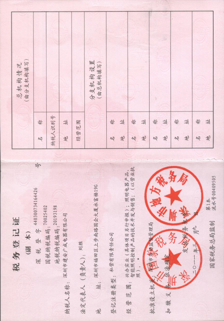 发证机构:深圳市税务局