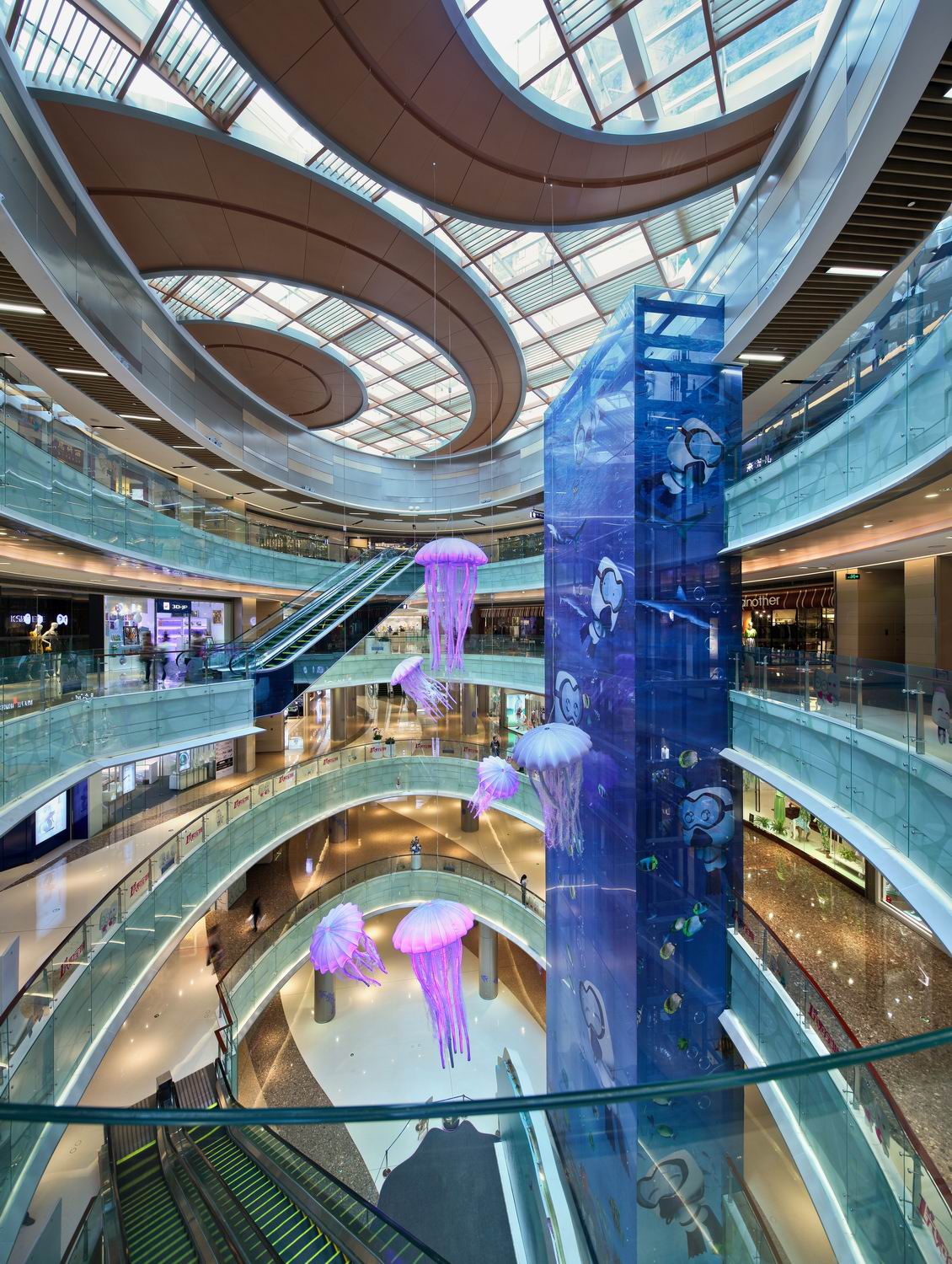 设计师希望通过设计来提升all city的商业品牌价值,将其打造成深圳的商业地标、未来深圳湾购物与休闲的理想之地。结合all city 的地域特色,将“海洋”作为灵感的来源,体现一种“灵动空间”与“创意生活”。