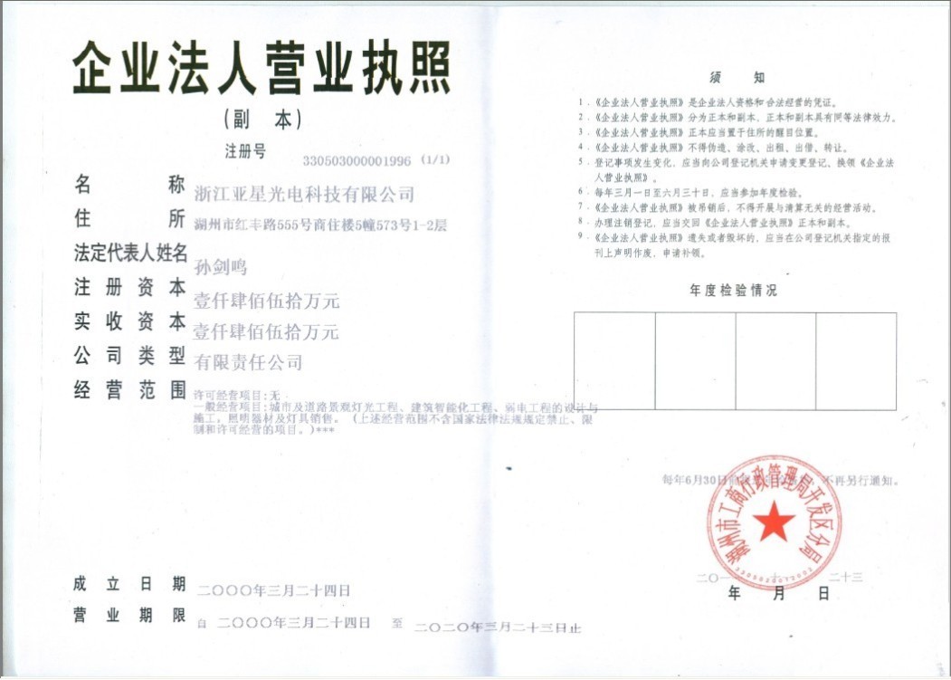 发证机构:湖州市工商行政管理局开发区分局