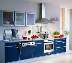 偏冷的颜色是简约主义的代表色。简约厨房所使用的原木色有两种,一种是采用实木不进行着色,另一种是采用原木纹理的高档防火板。原木色能够体现木材本身的自然美感,突出家具的设计。白色是简约主义的一种永恒颜色,简约厨房中运用白色,可以把看似狭小的空间以一种透视的效果达成纵伸感。同样黑色也是简约厨房的一个常用色,但由于颜色过深,所以在厨房中很少会有大面积、整体的黑色,而是偏向于时下非常流行的黑胡桃木色为代表的深褐色,作为一种点缀色出现。