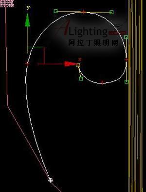 灯的其他部分其实也是创建线的办法来制作的,编辑曲线的时候暂时取消把线显示为网格的选项,便于观察弧度,但是我们现在的线是没有弧度,而且在顶视图他们的位置也不对不要急 慢慢来