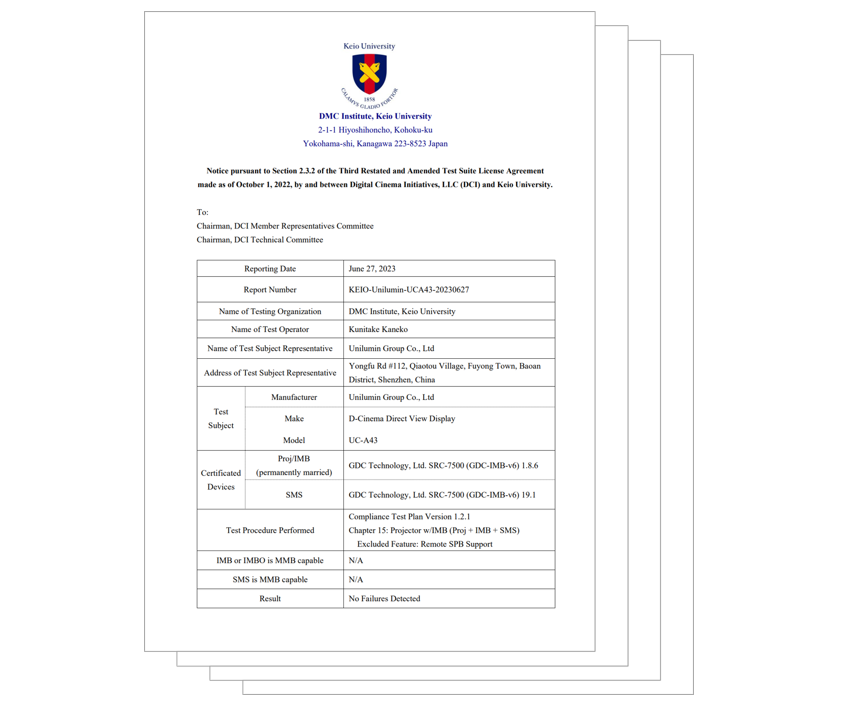 反观2023年的电影市场,春节档《满江红》和《流浪地球2》收获“双40亿+”佳绩,6月下旬《消失的她》横空出世为年中收官锦上添花......据统计,23年上半年我国电影市场累计观影人次6.0亿。而在市场“最终端”的电影放映技术体系里,代表国产LED放映系统顶端水平的洲明科技再下一城——洲明UC-A43电影屏成功通过DCI相关检验测试,成为其第四款获此认证的电影放映系统产品。