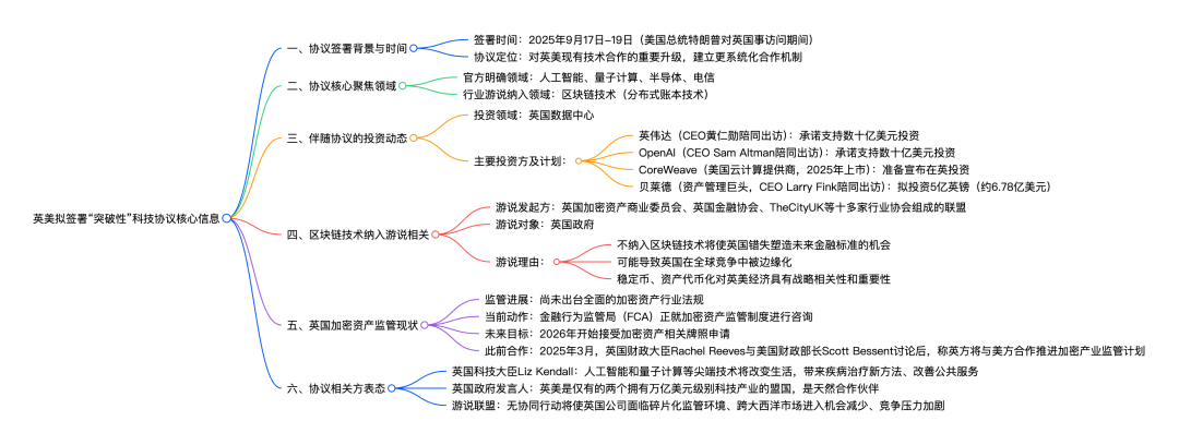 美国防长特朗普9月17-19日访英期间,英国计划在这期间与美签署科技合作协议,重点覆盖人工智能、量子计算等前沿领域,旨在为大西洋两岸企业和消费者带来提振,并建立更系统化的科技合作机制,系两国现有合作的重要升级。同时,英伟达、OpenAI、CoreWeave、贝莱德等企业将跟进,其中贝莱德计划投5亿英镑(约6.78亿美元)用于英国数据中心建设,若落地将为英国数字基建注入动力。
