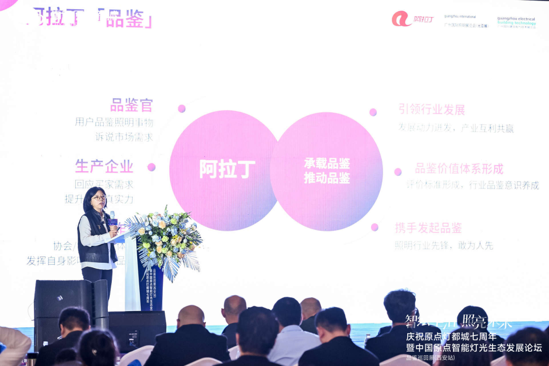 随后,《阿拉丁·设计》主编林丽旋登台,详细介绍了阿拉丁品鉴巡回展的相关内容。她指出,阿拉丁品鉴始终以“发现好企业,品鉴好产品”为宗旨,致力于构建一个基于专业用户真实反馈、生产企业持续响应的价值评价体系,推动行业良性发展。