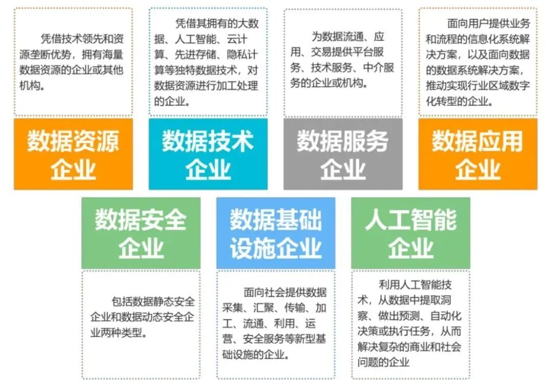 具体而言,数智产业由数据资源、数智技术、数智产品、数智企业、数智生态等五大要素构成。其中数智企业是重要主体,又可划分为数据资源企业、数据技术企业、数据服务企业、数据应用企业、数据安全企业、数据基础设施企业、人工智能企业七大类型。