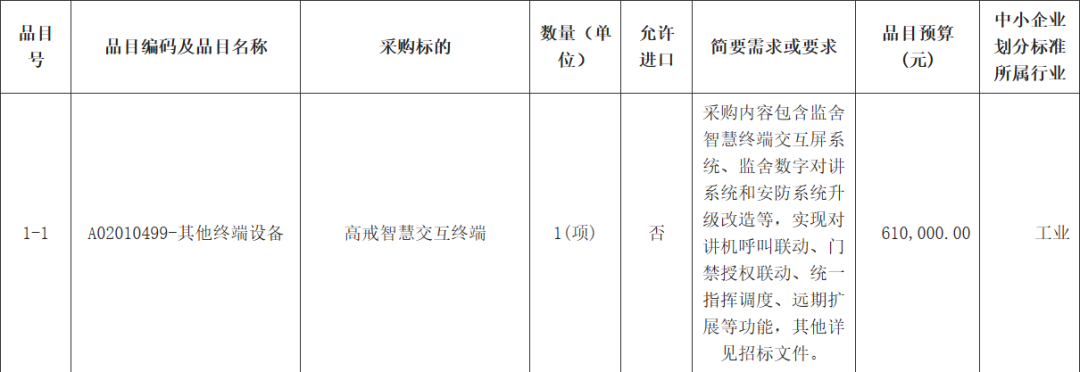 福建省洛江监狱高戒监舍智慧交互终端采购项目 1、项目概况 ◎项目名称:福建省洛江监狱高戒监舍智慧交互终端采购项目 ◎项目编号: ZXCG-350001-FJXW-20250005 ◎采购方式:公开招标 ◎预算金额:610,000.00元 ◎采购包1(高戒智慧交互终端): ·采购包预算金额:610,000.00元 ·采购包最高限价: 610,000.00元 ·采购需求:(包括但不限于标的的名称、数量、简要技术需求或服务要求等) 2、采购项目需要落实的政策 ◎节能产品:适用于本项目,按照财政部《关于印发节能产品政府采购品目清单的通知》(财库〔2019〕19号)或最新公布的品目清单执行。 ◎环境标志产品:适用于本项目,按照财政部《关于印发环境标志产品政府采购品目清单的通知》(财库〔2019〕18号)或最新公布的品目清单执行。 3、获取招标文件 ◎时间: 2025-09-30 至 2025-10-14 ,(提供期限自本公告发布之日起不得少于5个工作日),每天上午00:00:00至12:00:00,下午12:00:00至23:59:59(北京时间,法定节假日除外) ◎地点:投标人应先在福建省政府采购网(zfcg.czt.fujian.gov.cn)免费申请账号在福建省政府采购网上公开信息系统(自采平台)按项目下载招标文件(请根据项目所在地,登录对应的(省本级/市级/区县))福建省政府采购网上公开信息系统(自采平台)操作,否则投标将被拒绝。 ◎方式:在线获取 ◎售价:免费 4、提交投标文件截止时间、开标时间和地点 ◎2025-10-21 09:30:00(北京时间)(自招标文件开始发出之日起至投标人提交投标文件截止之日止,不得少于20日) ◎地点:泉州市丰泽区刺桐北路894号万通商务园2号楼2层开标厅 5、其他信息 ◎本采购包不接受联合体投标 ◎合同履行期限:初验:合同签订之日起60日历日内完成所有硬件货物安装、调试,并实现硬件具备功能(监区门禁改造,监舍走廊及门口终端屏安装,线路敷设完全等硬件功能),符合初步验收要求,由中标人提出验收申请并经验收完成。终验:初步验收完成后,15日历日内完所有设备软件调试工作,15日历日试运行期间,软硬件功能稳定正常,符合最终验收要求,由中标人提出验收申请并经验收完成 ◎本项目投标保证金为6100元,请各投标人根据招标文件的要求缴纳投标保证金 后台回复“洛江监狱”获取项目联系方式 福建省网络交易主体数据与有关监测服务竞争性磋商公告 1、项目概括 ◎项目编号: [350001]AHG[CS]2025003 ◎项目名称:福建省网络交易主体数据与有关监测服务 ◎采购方式:竞争性磋商 ◎预算金额:580,000.00元 ◎采购包1(福建省网络交易主体数据与有关监测服务): ◎采购包预算金额:580,000.00元 ◎采购包最高限价: 580,000.00元 ◎磋商保证金: 0元 ◎采购需求:(包括但不限于标的的名称、数量、简要技术需求或服务要求等) 2、获取采购文件 ◎时间: 2025-09-26 至 2025-10-10 ,(提供期限自本公告发布之日起不得少于5个工作日),每天上午00:00:00至12:00:00,下午12:00:00至23:59:59(北京时间,法定节假日除外) ◎地点:采购文件随同本项目采购公告一并发布,供应商应通过福建省政府采购网上公开信息系统的注册账号(免费注册)并获取竞争性磋商文件(登陆福建省政府采购网上公开信息系统进行文件获取),否则报价响应将被拒绝。 ◎方式:在线获取 ◎售价:免费 3、响应文件提交、开标时间和地点 ◎截止时间:2025-10-11 09:00:00(北京时间)(从磋商文件开始发出之日起至供应商提交首次响应文件截止之日止不得少于10日) ◎地点:福建省福州市鼓楼区五四路国际大厦综合楼二十一层A座福州分公司开标室 4、其他信息 ◎本采购包不接受联合体投标 ◎合同履行期限:自合同签订之日起365日。 后台回复“福建网络”获取项目联系方式 福建省医院财务运营数据平台、系统接口改造服务 1、项目概括 ◎项目编号: [350001]ZXFZ[GK]2025050 ◎项目名称:医院财务运营数据平台、系统接口改造服务 ◎采购方式:公开招标 ◎预算金额:2,805,000.00元 ◎采购包1(医院财务运营数据平台): ·采购包预算金额:2,362,500.00元 ·采购包最高限价: 2,362,500.00元 ·投标保证金: 23,625.00元 ·采购需求:(包括但不限于标的的名称、数量、简要技术需求或服务要求等) ·本采购包不接受联合体投标 ·合同履行期限:自合同生效之日起至合同约定的合同义务履行完毕。 ◎采购包2(系统接口改造服务): ·采购包预算金额:442,500.00元 ·采购包最高限价: 442,500.00元 ·投标保证金: 4,425.00元 ·采购需求:(包括但不限于标的的名称、数量、简要技术需求或服务要求等) ·本采购包不接受联合体投标 ·合同履行期限:自合同生效之日起至合同约定的合同义务履行完毕。 2、获取招标文件 ◎时间: 2025-09-24 至 2025-09-30 ,(提供期限自本公告发布之日起不得少于5个工作日), ◎每天上午00:00:00至12:00:00,下午12:00:00至23:59:59(北京时间,法定节假日除外) ◎地点:招标文件随同本项目招标公告一并发布;投标人应先在福建省政府采购网(zfcg.czt.fujian.gov.cn)免费申请账号在福建省政府采购网上公开信息系统按项目下载招标文件(请根据项目所在地,登录对应的(省本级/市级/区县))福建省政府采购网上公开信息系统操作),否则投标将被拒绝。 ◎方式:在线获取 ◎售价:免费 3、提交投标文件截止时间、开标时间和地点 ◎2025-10-16 09:00:00(北京时间)(自招标文件开始发出之日起至投标人提交投标文件截止之日止,不得少于20日) ◎地点:福建省福州市鼓楼区五四路159号世界金龙大厦14层A区单