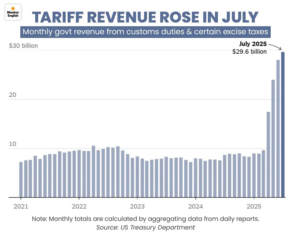2025年4月对等关税发布以来,美国关税收入显著增加。