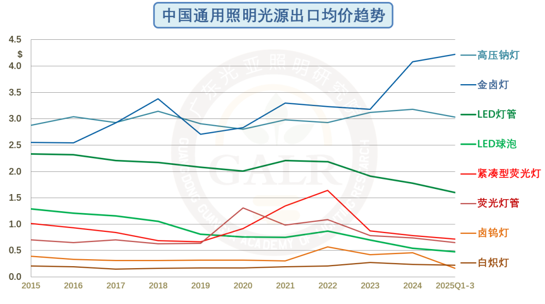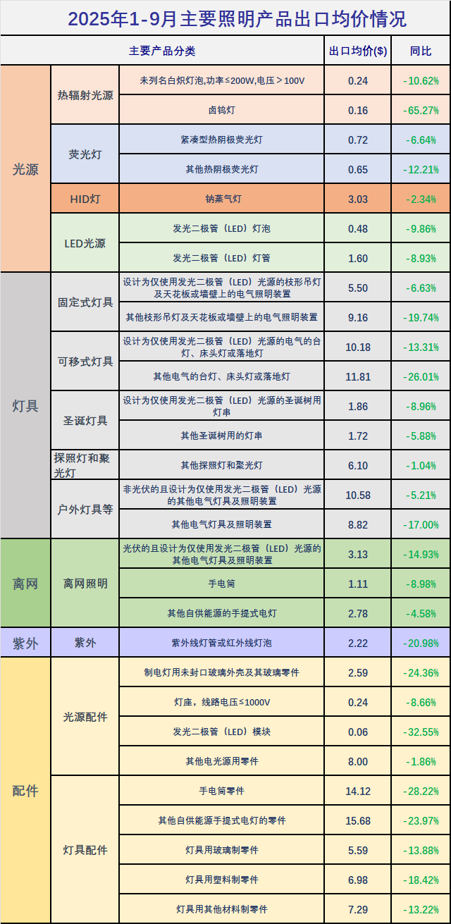 主要照明产品2025年1-9月出口