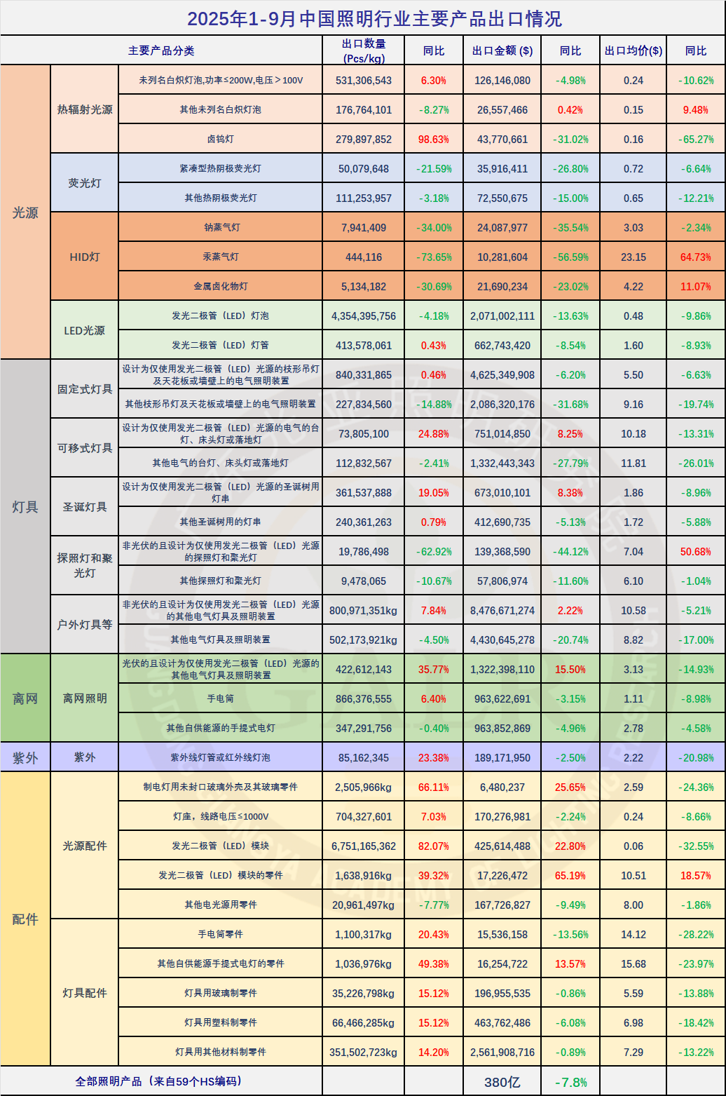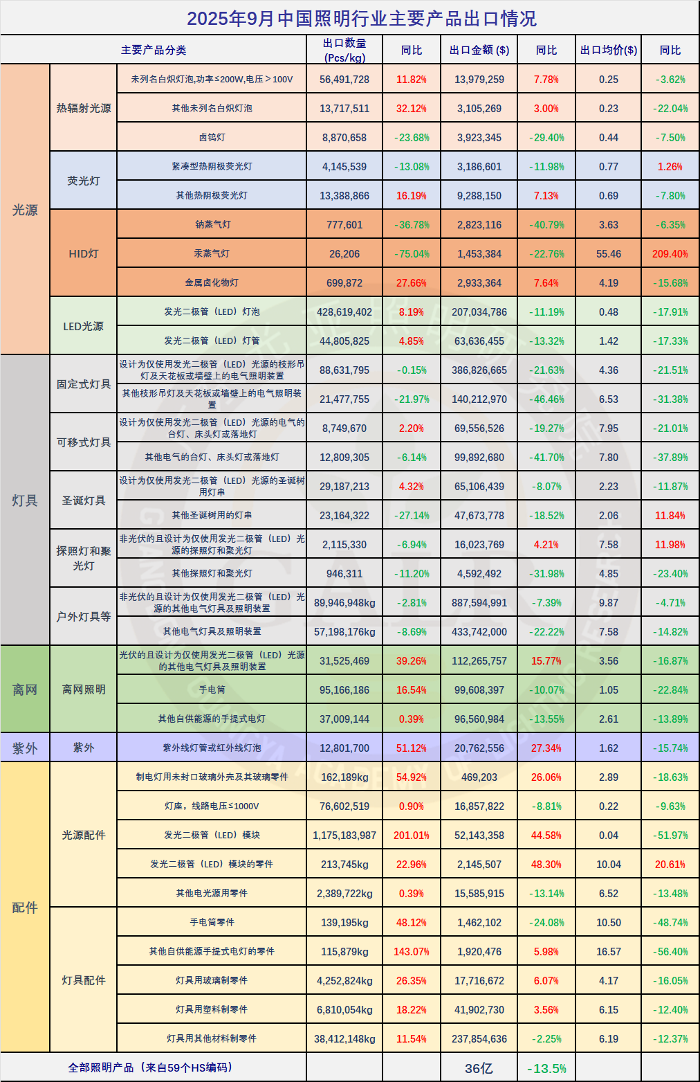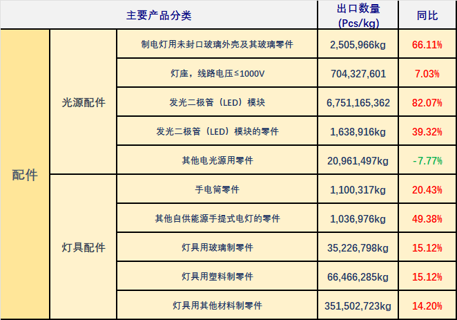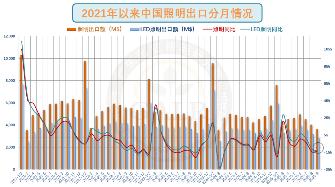 主要照明产品2025年9月出口
