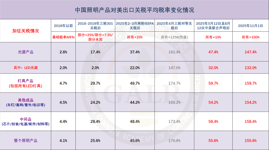2025年11月1日起,中国照明产品对美出口平均关税将高达155.6%。