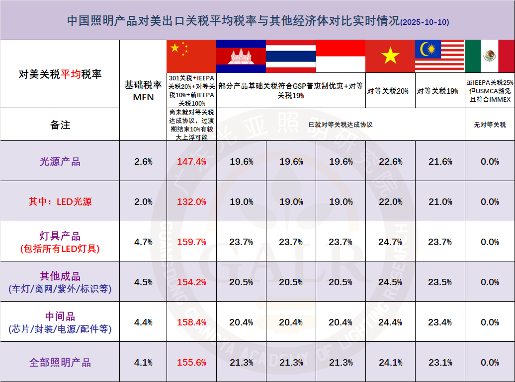 相关链接:中国照明产品对美出口关税平均税率实时情况(2025-10-10)