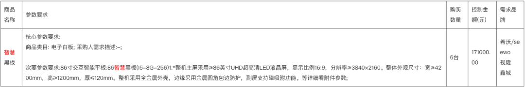 项目编码:HNSZZFCG-2025-0819 项目名称:邵阳市第三中学教学一体机(智慧黑板)设备更新项目 项目投资:38万元 采购单位:重庆建筑工程职业学院 采购需求:智能交互平板15台、光能黑板15套、教学智能笔15支、视频展台15台、集中控制管理平台15点、安装调试15套等,具体参数见采购需求 其他:本项目不接受联合体投标,本采购项目拒绝进口产品投标 获取招标文件:于2025年11月11日9:00至2025年11月18日17:00时止,在邵阳市公共资源交易平台(http://www.sysggzy.com/)免费获取招标文件 投标截止时间:2025年12月2日9:30(北京时间) 后台回复“邵阳教学”获取项目联系方式