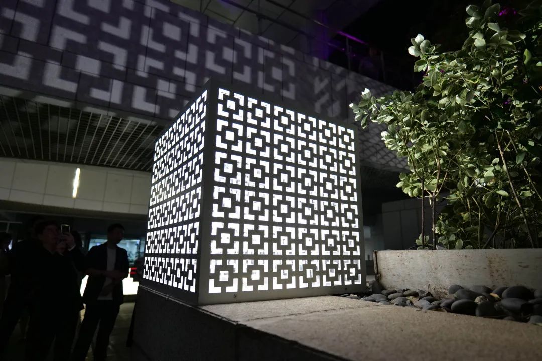 《苏韵》一组现代简约的发光魔方,结合古典江南园林窗花元素,一个魔方一个图案一个景致,窗花的影子通过内部的光印在周边的墙壁、地面和丛林中。通过控制形成有节奏有韵律的动态效果,光随影动,光影弥漫,如窗外微风吹过,表现光影下的江南园林景致和苏州味道。[详情]