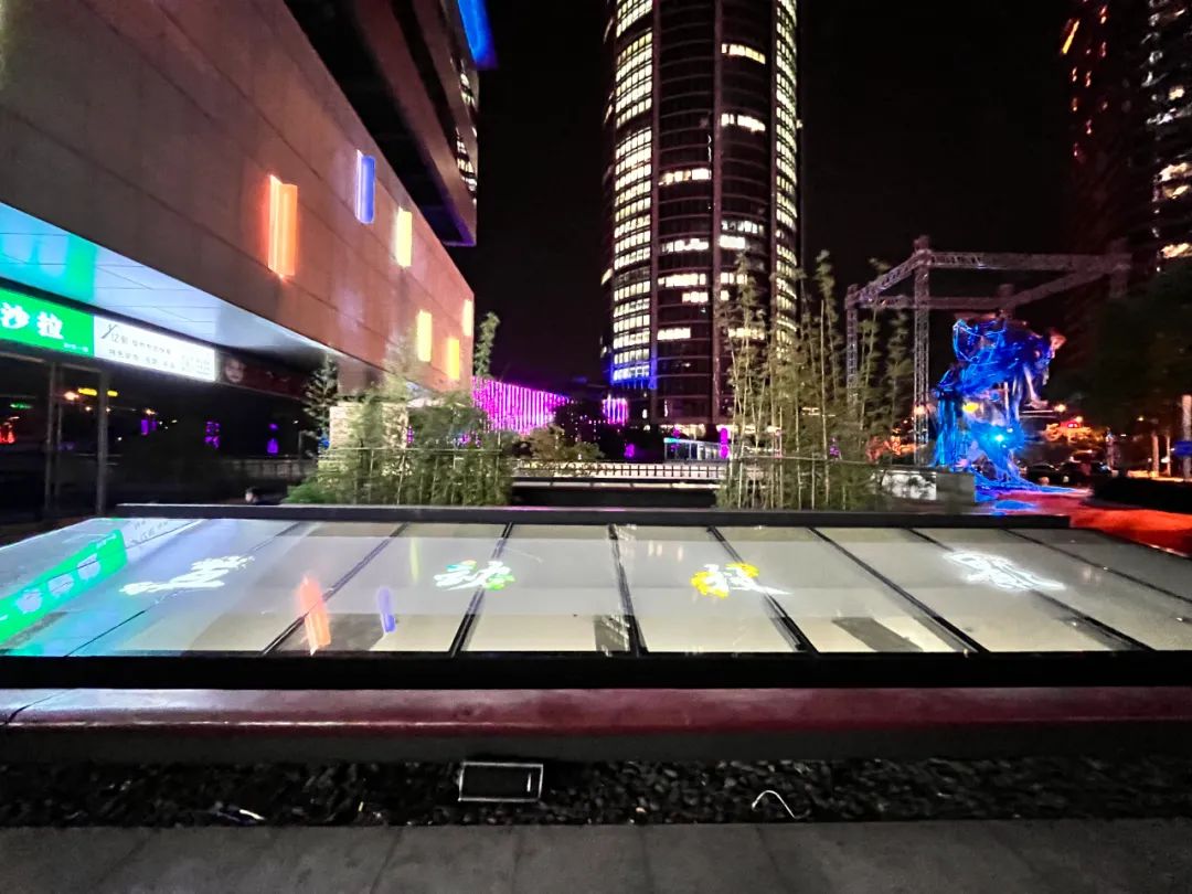《光之韵律》充分利用地砖与两侧台阶的空间区域,通过灯光对地面进行有层次的分切,形成连贯有节奏的跳跃,既对立又统一。不同于日光之下的景象,日落景明之时,这里光色斑斓。微澜入夜,灯光从两边的台阶穿射而出,越过地砖,伸向对面,给人一种灯明路静、心境明朗的意境,或从容淡泊,或晶莹含蓄,整齐划一的光线,仿佛一曲钢琴演奏,有关于苏州的韵律就这样在光影的作用下娓娓道来。[详情]